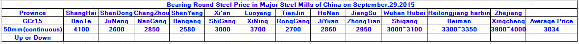 September.29.2015 Bearing Round Steel Price in Major Steel Mills of China
