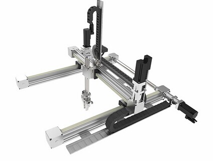 Schaeffler Lineartechnik has developed the MTKUSE telescopic actuator specifically for secondary axes such as in pick-and-place applications or for tool transfer. Three precision linear ball bearing and guideway assemblies are arranged on top of each other such that the possible travel distance is more than twice that of the basic actuator. The linear unit can extend in both directions. A geared servomotor is mounted on the outside of the aluminum profile and drives the actuator via a rack and pinion drive. On request by the customer, servomotors from a range of manufacturers and suitably prepared, low backlash precision planetary gearboxes can be fitted. End switches and distance measuring systems can be integrated on request. An indirect evaluation of the frictional torque and therefore the bearing condition is possible via the servo controller using current detection and position error monitoring.