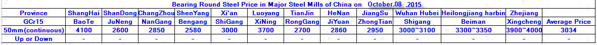 October.08.2015 Bearing Round Steel Price in Major Steel Mills of China
