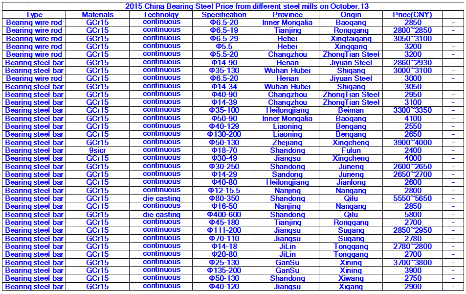 Next Aug 17 Bearing Steel Price in Different Regions of China