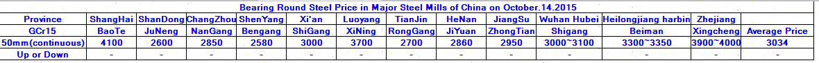 October.14.2015 Bearing Round Steel Price in Major Steel Mills of China