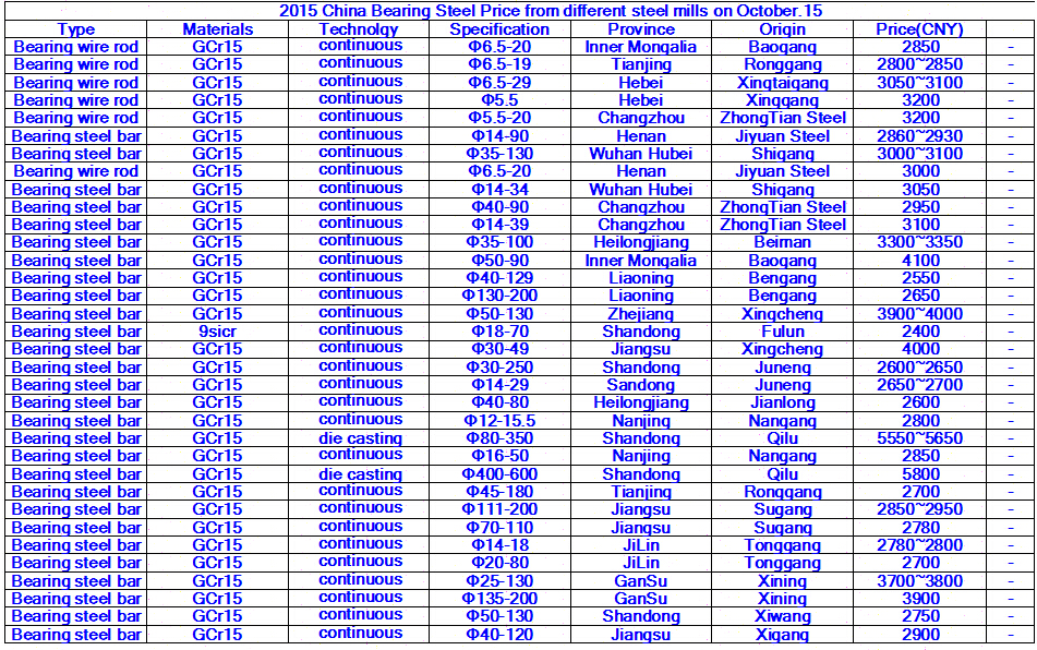 Next Aug 17 Bearing Steel Price in Different Regions of China