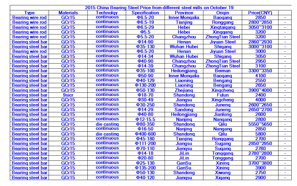 Next Aug 17 Bearing Steel Price in Different Regions of China