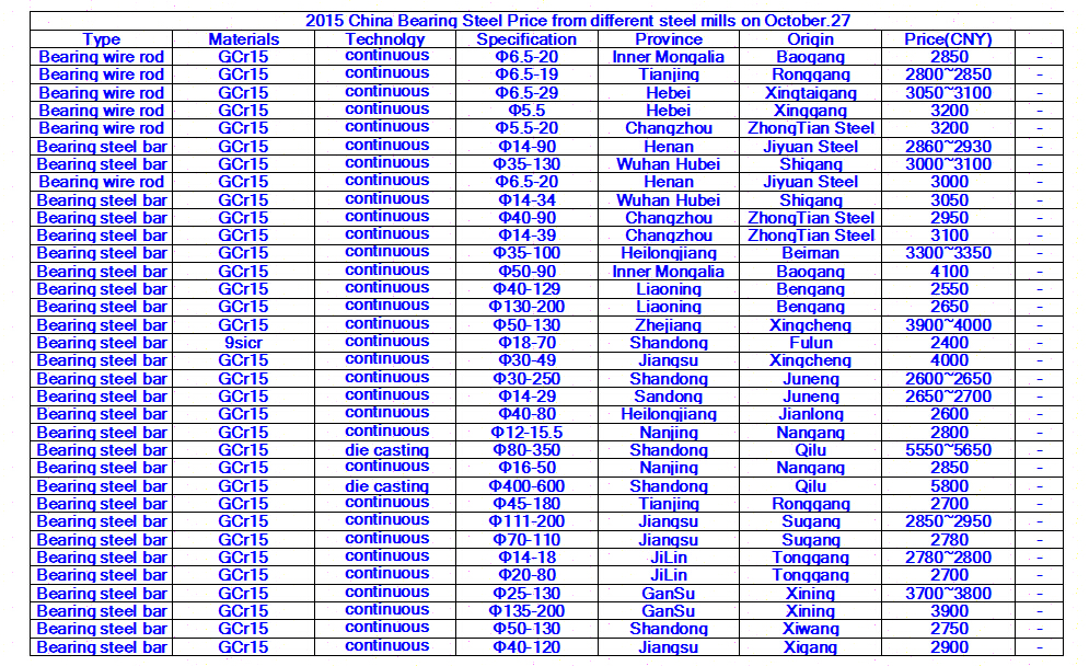 Next Aug 17 Bearing Steel Price in Different Regions of China