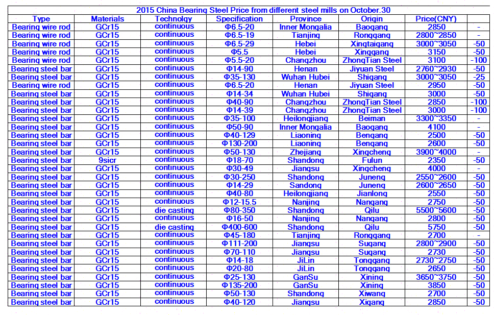 Next Aug 17 Bearing Steel Price in Different Regions of China