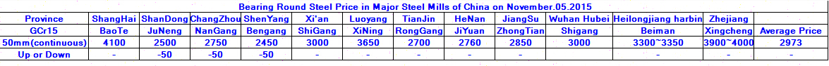 November.05.2015 Bearing Round Steel Price in Major Steel Mills of China