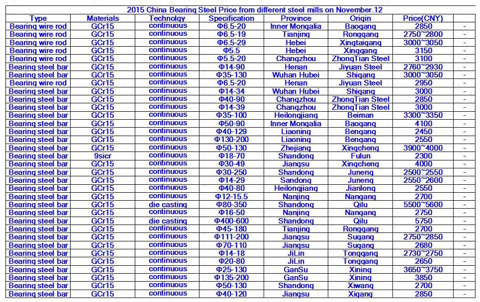 Next Aug 17 Bearing Steel Price in Different Regions of China