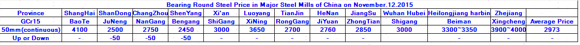 November.12.2015 Bearing Round Steel Price in Major Steel Mills of China