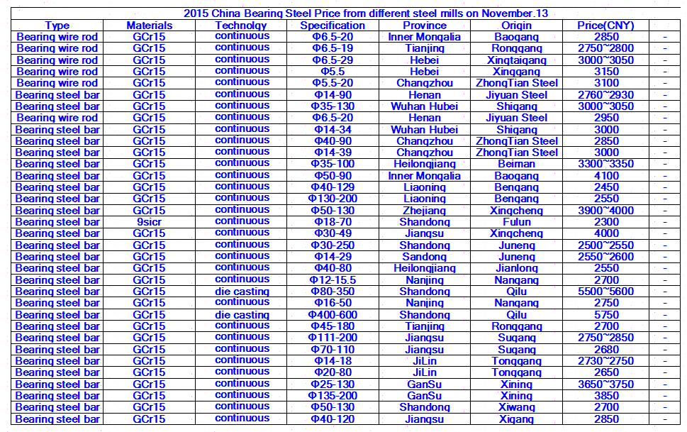 2015 China Bearing Steel Price from different steel mills on November 13