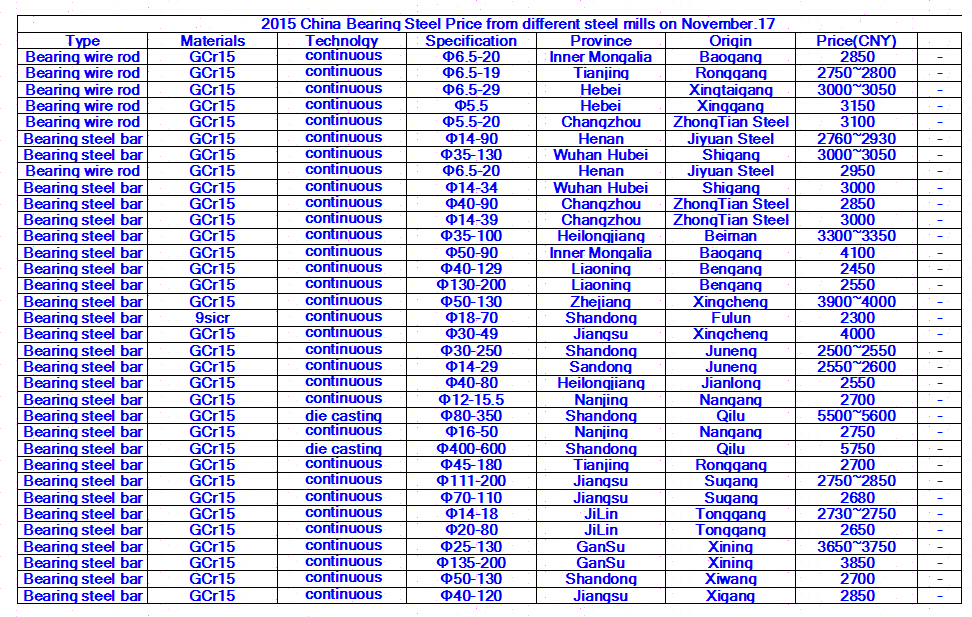 Next Aug 17 Bearing Steel Price in Different Regions of China