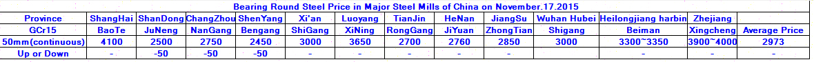 November.17.2015 Bearing Round Steel Price in Major Steel Mills of China