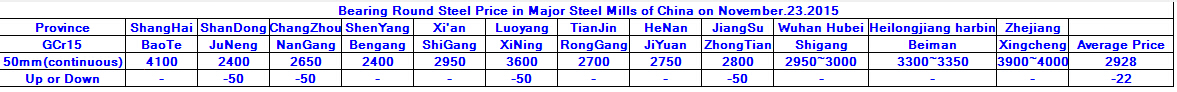 November.23.2015 Bearing Round Steel Price in Major Steel Mills of China