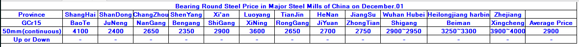 December.01.2015 Bearing Round Steel Price in Major Steel Mills of China