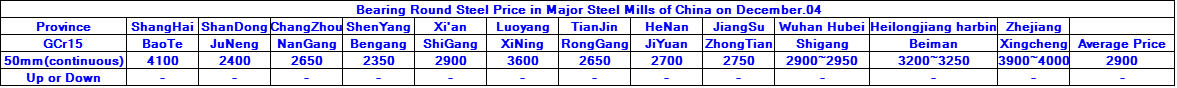 December.04.2015 Bearing Round Steel Price in Major Steel Mills of China