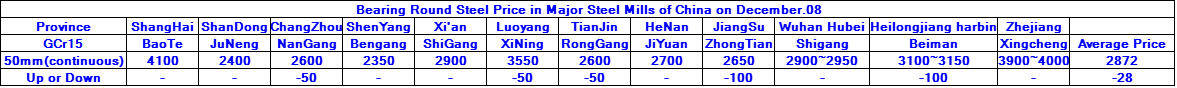 December.08.2015 Bearing Round Steel Price in Major Steel Mills of China
