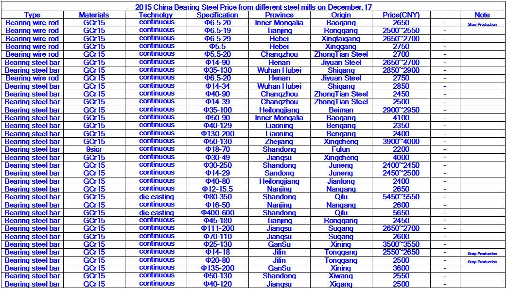 Next Aug 17 Bearing Steel Price in Different Regions of China