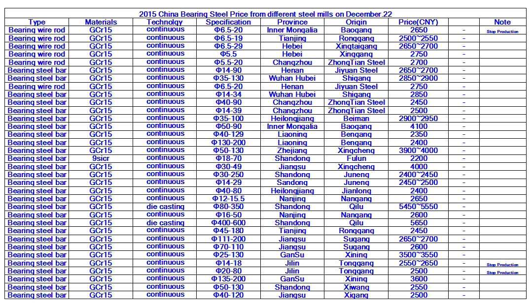 2015 China Bearing Steel Price from different steel mills on December.22