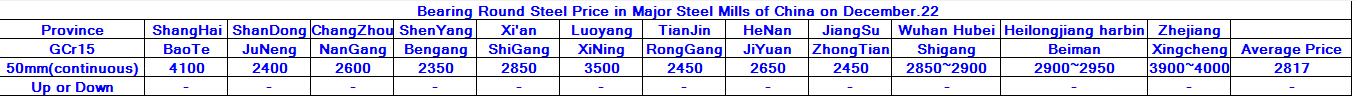 December.22.2015 Bearing Round Steel Price in Major Steel Mills of China