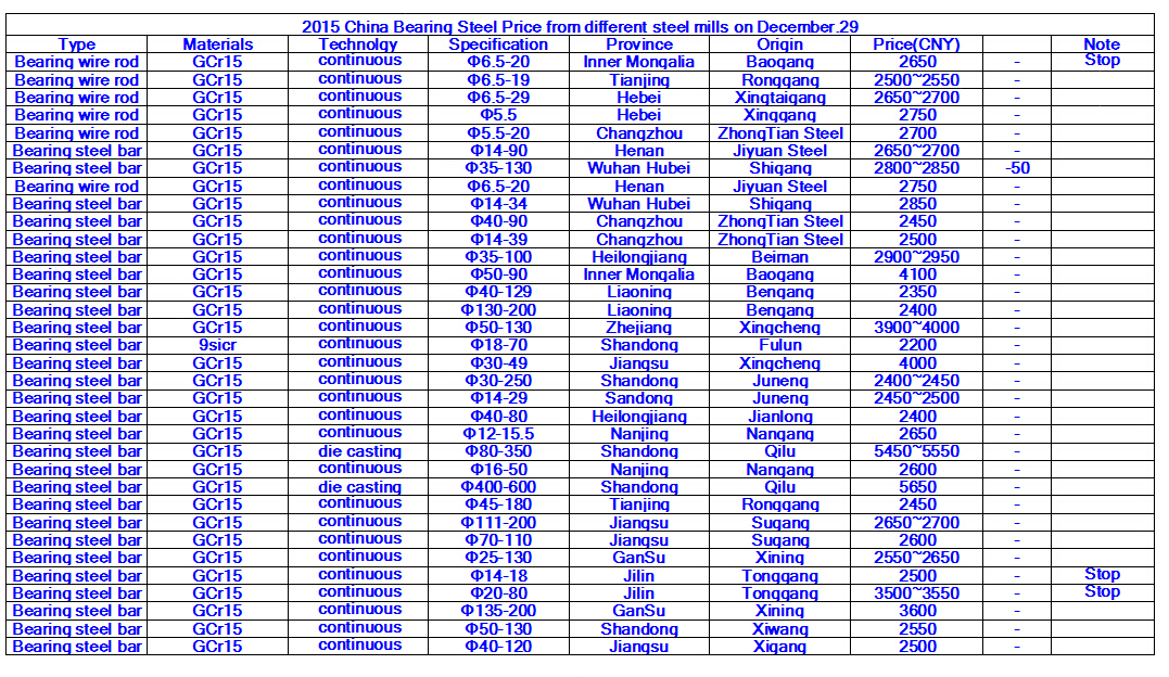 2015 China Bearing Steel Price from different steel mills on December.29