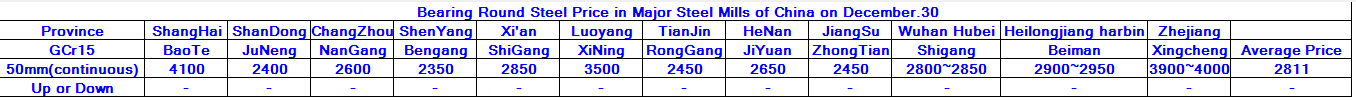 December.30.2015 Bearing Round Steel Price in Major Steel Mills of China