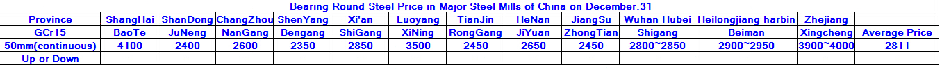December.31.2015 Bearing Round Steel Price in Major Steel Mills of China