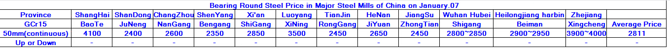 January.07.2016 Bearing Round Steel Price in Major Steel Mills of China
