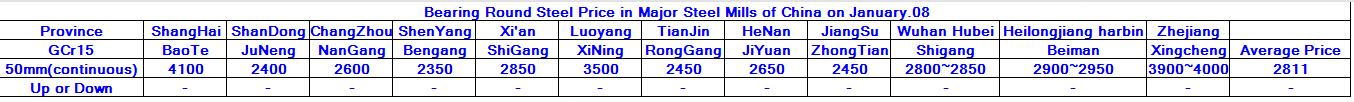 January.08.2016 Bearing Round Steel Price in Major Steel Mills of China