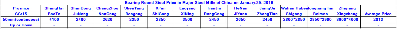 January.25.2016 Bearing Round Steel Price in Major Steel Mills of China