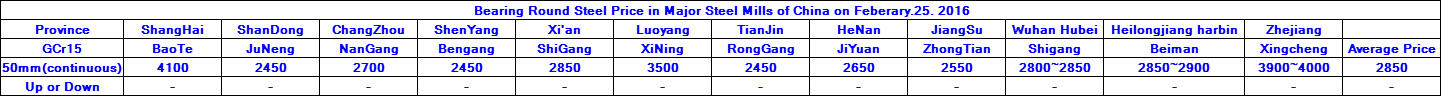 Feberary.25.2016 Bearing Round Steel Price in Major Steel Mills of China