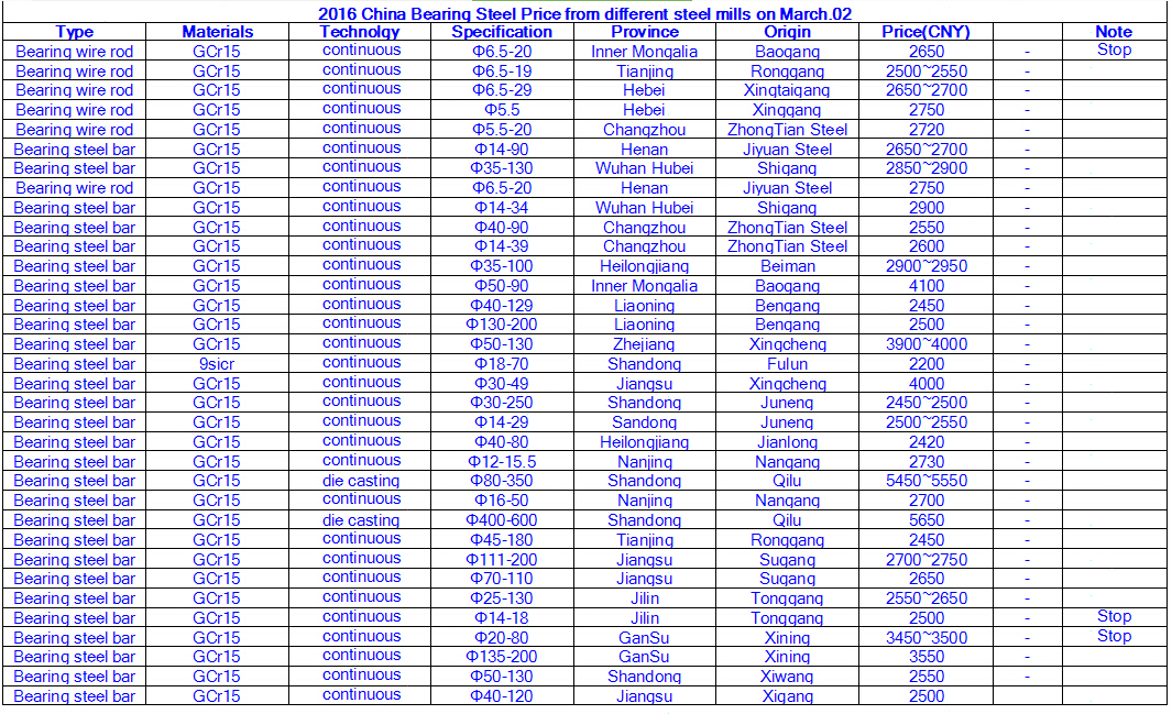 2016 China Bearing Steel Price from different steel mills on March.02