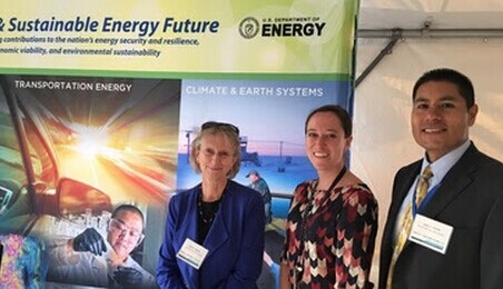 Renewable Systems & Energy Infrastructure Director Carol Adkins (left), Business Development Specialist Amanda Spinney (center), and Senior Manager Juan Torres (right) represent Sandia National Laboratories at the May 2016 EERE Lab Impact Summit.