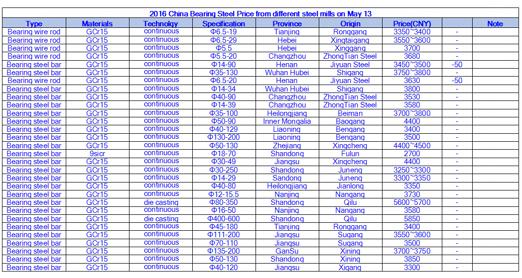 Next Aug 17 Bearing Steel Price in Different Regions of China