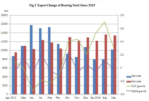 2. Output of finished bearing steel from January to March: decreased YoY as reported by the majority of steel mills