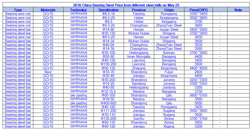 Next Aug 17 Bearing Steel Price in Different Regions of China