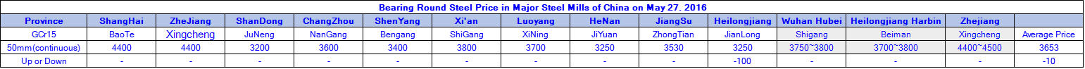 May 27.2016 Bearing Round Steel Price in Major Steel Mills of China