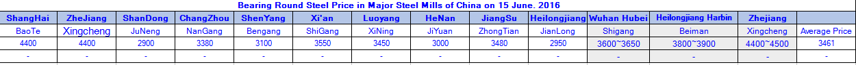June 15.2016 Bearing Round Steel Price in Major Steel Mills of China