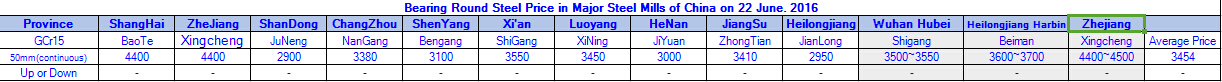 June 22.2016 Bearing Round Steel Price in Major Steel Mills of China