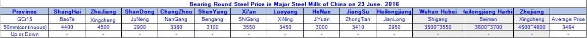 June 23.2016 Bearing Round Steel Price in Major Steel Mills of Chin