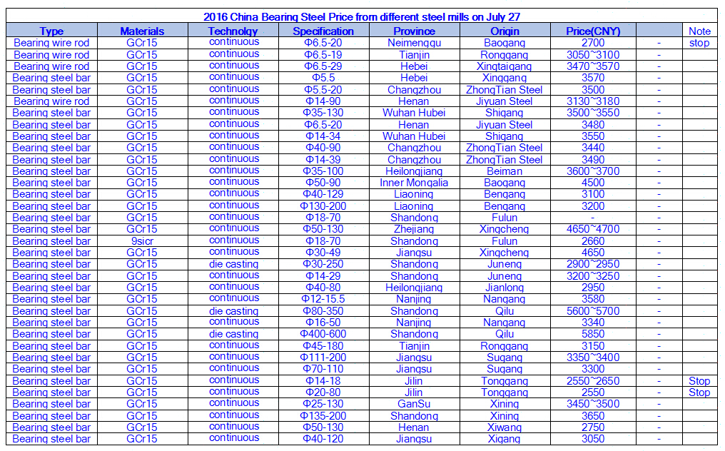 Next Aug 17 Bearing Steel Price in Different Regions of China