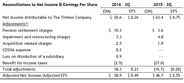 "We performed well again this quarter, demonstrating our ability to navigate a challenging market environment," said Richard G. Kyle, Timken president and chief executive officer. "While most industrial sectors remain weak, our earnings are on track for the year and we continue to focus on organic outgrowth initiatives, operational excellence and deploying capital to create shareholder value."