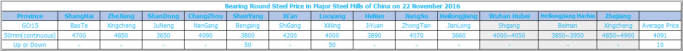 November 22.2016 Bearing Round Steel Price in Major Steel Mills of China