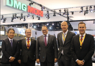 (L-R) Dr. Masahiko Mori, CEO, DMG MORI; Klas Forsstrom, President Sandvik Coromant; Christian Thones, Chairman of Executive Board, DMG MORI; Bjorn Roodzant, VP Marketing Communication; Sean Holt, General Manager Sales Area Americas