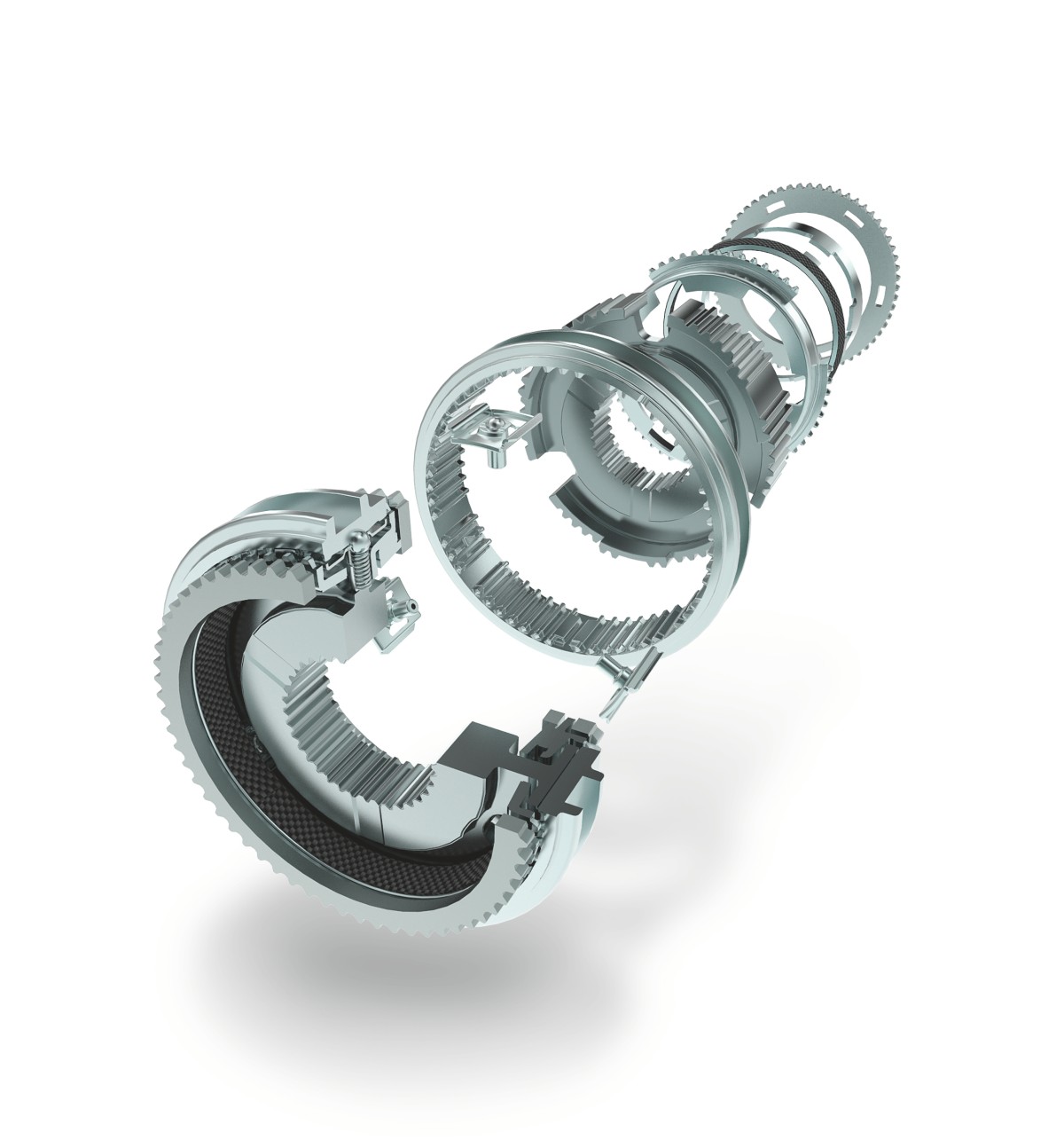 The Short System fully utilises the potential offered by matched components and technologies for reducing the design space without sacrificing performance. Schaeffler Technologies Short Synchro (STSS) allows the axial design space of the transmission to be reduced by up to 25 per cent by consistently utilising the advantages offered by forming technology. Smaller tooth moduli and innovative detailed solutions make it possible to maintain the relevant width of the friction cones that affect performance, the gear-tooth load and the clearance that is important for low drag torques. If the overall length reduction is implemented in the transmission structure, this may reduce the weight by up to 3.5kg and also reduce costs. The freed-up design space can be used in a number of ways depending on the application, such as increasing gear teeth performance or for drive train hybridisation.