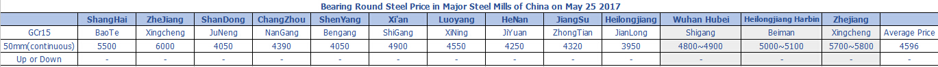 May 25.2017 Bearing Round Steel Price in Major Steel Mills of China