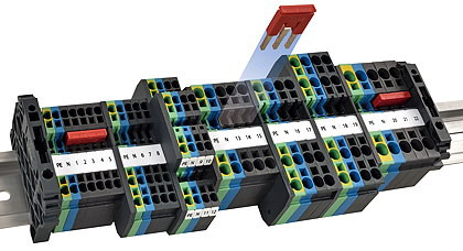 • The XW5T DIN-rail terminal blocks with Push-in Plus technology, which have been doubled in number from 18 to 36 models. They include 5.2mm-wide blocks with rated currents up to 24A, and 6.2mm-wide blocks up to 32A. There are also 1:2 (internal wiring) and 2:2 types (for branching), and space-saving two-tier types.