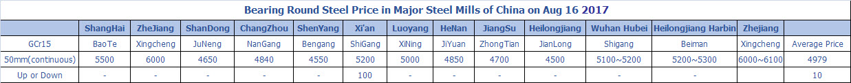 Aug 16 2017 Bearing Round Steel Price in Major Steel Mills of China