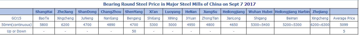 Sept 7 2017 Bearing Round Steel Price in Major Steel Mills of China