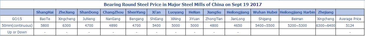 Sept 19 2017 Bearing Round Steel Price in Major Steel Mills of China