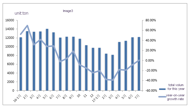 From January to July , the export quantity of bearing steel was 73,395 tons, down 18,779 tons than the same period of last year. The volume decreased by 20.37% year on year. On July, the export quantity of bearing steel was 12,207tons, up 24 tons than last month.The volume increased by 0.97 % year-on-year and also increased by 0.2% comparing the last year. Image 3 shows the difference of the export since 2016, now the exporters mainly centered by XINGCHENG, DAYE and DONGTE . And XINCHENG contributes most of the volume at 11,085tons, also the biggest.