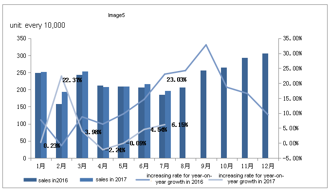 Statistics from China Automobile Industry Association: July, 2017, the overall sales volume decreased slightly.From January to July, both auto production and sales increased slightly year on year growth . In July, the yields of autos reach to20,594,000 units, the result is decreased by 4.98% comparing with last year, and increased by 4.76% year-on-year . Sales volume reaches to 1,971,200units, the result decreased by 9.24% comparing with last year, and increased by 6.15% year-on-year . From January to July,both yields and sales volume is 1,558,520 units and 1,532,520units. It is increased by 4.65% and4.10% year-on-year growth.